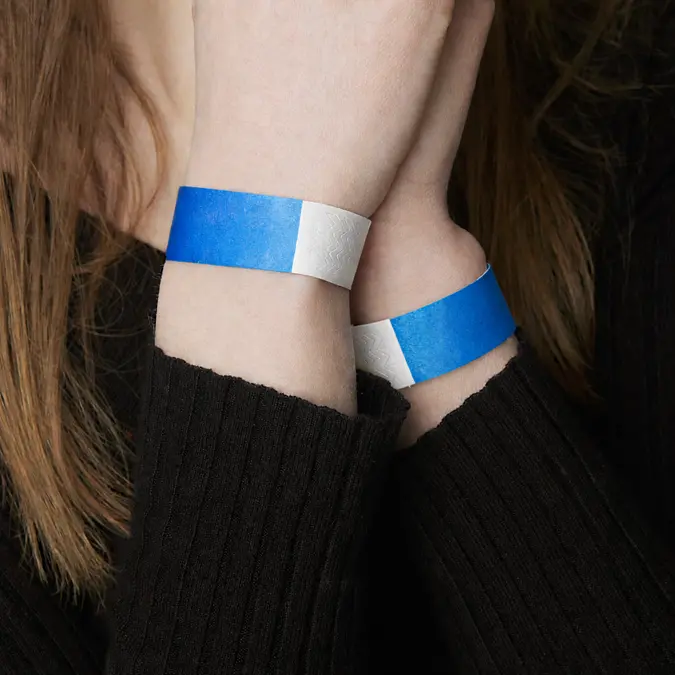 Tyvek ist das Geheimnis hinter Papierarmbändern! Papierarmbänder bestehen – entgegen dem Namen – nicht aus Papier, auch wenn sich das Material wie weiches Papier anfühlt und ihm zum Verwechseln ähnlich sieht. Die Armbänder werden vielmehr aus Tyvek hergestellt. Tyvek ist ein äußerst strapazierfähiges Material, das unter anderem zur Herstellung von Schutzanzügen verwendet wird. Das Material ist nahezu unmöglich zu zerreißen, lässt sich jedoch sehr leicht mit einer Schere oder einem Messer durchtrennen, wenn Gäste das Armband wieder abnehmen möchten. Papierarmbänder sind problemlos wasserfest – egal ob Bier verschüttet wird, Hände gewaschen werden oder Gäste baden gehen. Tyvekarmbänder werden zum Beispiel auch in Resorts eingesetzt, um den Überblick darüber zu behalten, welche Gäste All-inclusive, Halbpension usw. haben.