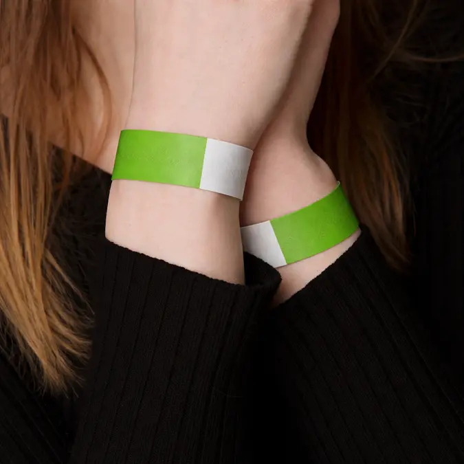 Tyvek ist das Geheimnis hinter Papierarmbändern! Papierarmbänder bestehen – entgegen dem Namen – nicht aus Papier, auch wenn sich das Material wie weiches Papier anfühlt und ihm zum Verwechseln ähnlich sieht. Die Armbänder werden vielmehr aus Tyvek hergestellt. Tyvek ist ein äußerst strapazierfähiges Material, das unter anderem zur Herstellung von Schutzanzügen verwendet wird. Das Material ist nahezu unmöglich zu zerreißen, lässt sich jedoch sehr leicht mit einer Schere oder einem Messer durchtrennen, wenn Gäste das Armband wieder abnehmen möchten. Papierarmbänder sind problemlos wasserfest – egal ob Bier verschüttet wird, Hände gewaschen werden oder Gäste baden gehen. Tyvekarmbänder werden zum Beispiel auch in Resorts eingesetzt, um den Überblick darüber zu behalten, welche Gäste All-inclusive, Halbpension usw. haben.