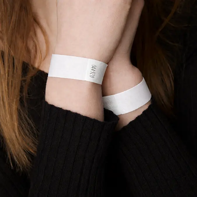 Man könnte meinen, diese Einlassbänder bestehen aus Papier - das Material fühlt sich wie weiches Papier an und sieht auch so aus, wenn man nicht zu genau hinschaut. Sie sind jedoch aus einem ganz anderen Material hergestellt: Tyvek. Tyvek ist ein sehr strapazierfähiges Material, das aufgrund seiner schützenden Eigenschaften auch zur Herstellung von Schutzanzügen verwendet wird. Es ist nahezu unmöglich, das Material zu zerreißen. Es lässt sich jedoch sehr leicht mit einer Klinge oder Schere zerschneiden, sodass der Träger das Armband problemlos entfernen kann. Tyvek-Einlassbänder werden durch Nässe nicht beschädigt. Der Träger kann Bier darauf verschütten, sich die Hände waschen oder duschen - kein Problem. Tyvek-Einlassbänder werden auch in Ferienorten verwendet, um den Überblick darüber zu behalten, welche Gäste das All-inclusive-Paket oder nur die Frühstücksoption in Anspruch nehmen.