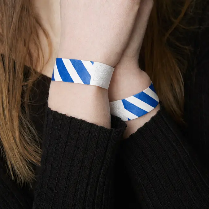 Man könnte meinen, diese Einlassbänder bestehen aus Papier - das Material fühlt sich wie weiches Papier an und sieht auch so aus, wenn man nicht zu genau hinschaut. Sie sind jedoch aus einem ganz anderen Material hergestellt: Tyvek. Tyvek ist ein sehr strapazierfähiges Material, das aufgrund seiner schützenden Eigenschaften auch zur Herstellung von Schutzanzügen verwendet wird. Es ist nahezu unmöglich, das Material zu zerreißen. Es lässt sich jedoch sehr leicht mit einer Klinge oder Schere zerschneiden, sodass der Träger das Armband problemlos entfernen kann. Tyvek-Einlassbänder werden durch Nässe nicht beschädigt. Der Träger kann Bier darauf verschütten, sich die Hände waschen oder duschen - kein Problem. Tyvek-Einlassbänder werden auch in Ferienorten verwendet, um den Überblick darüber zu behalten, welche Gäste das All-inclusive-Paket oder nur die Frühstücksoption in Anspruch nehmen.